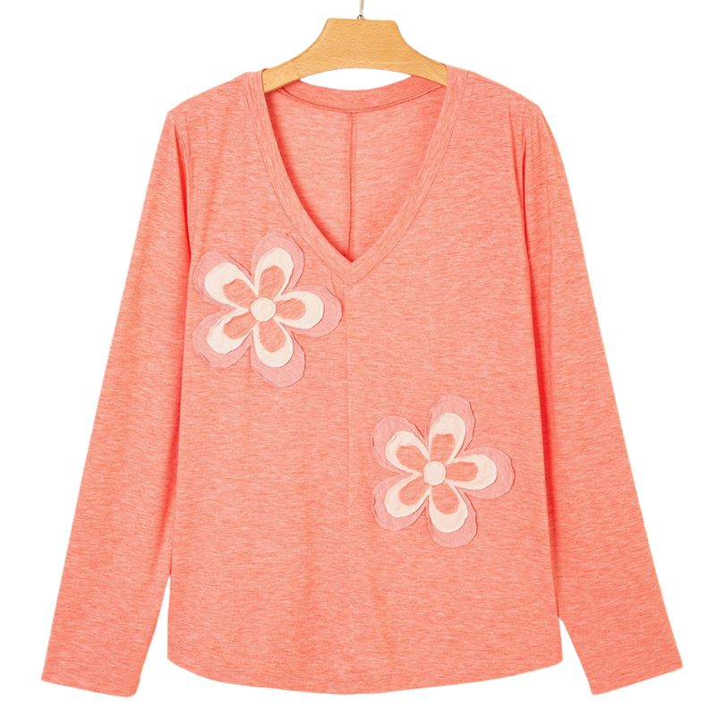 Brighten your day with this top. Its lively patchwork design adds a fun twist to classic design, while the comfortable long sleeves and flattering V-neck keep you cozy and stylish. Perfect for playful outings or a casual day in, this tee combines cheerful vibes with everyday comfort. Polyester/Viscose/Spandex